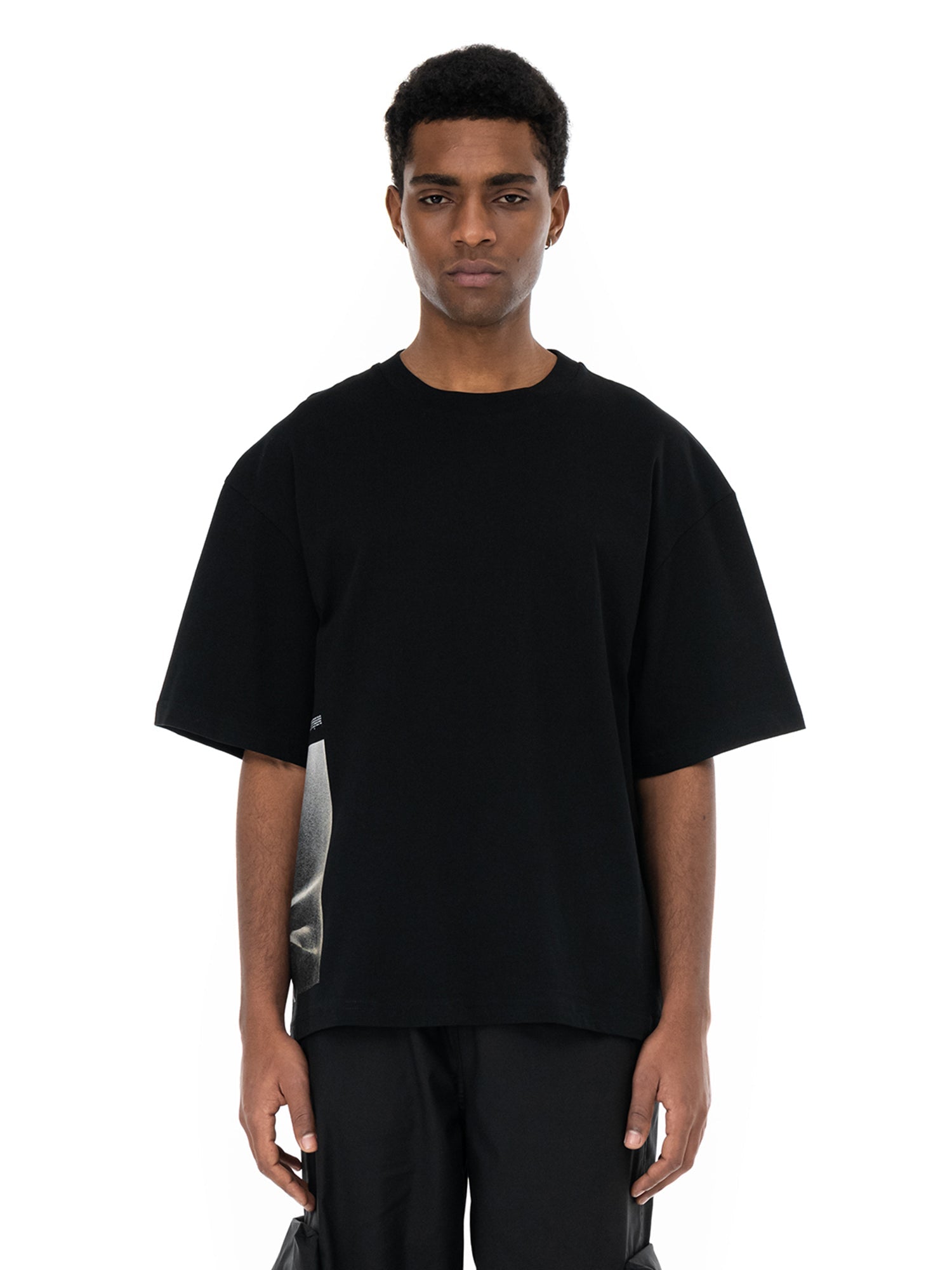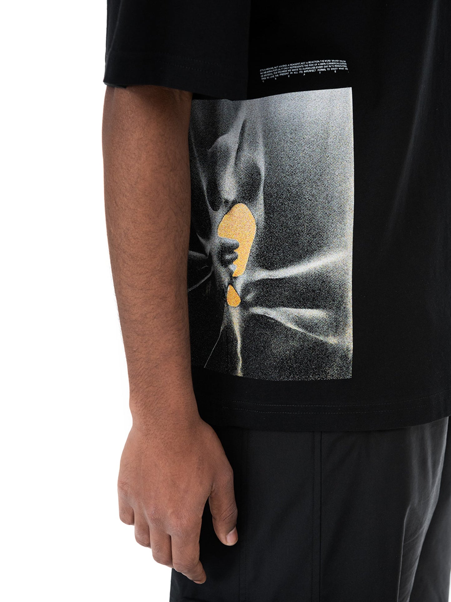 Girocollo. Maniche corte. Stampa digitale ed Etichetta applicata.