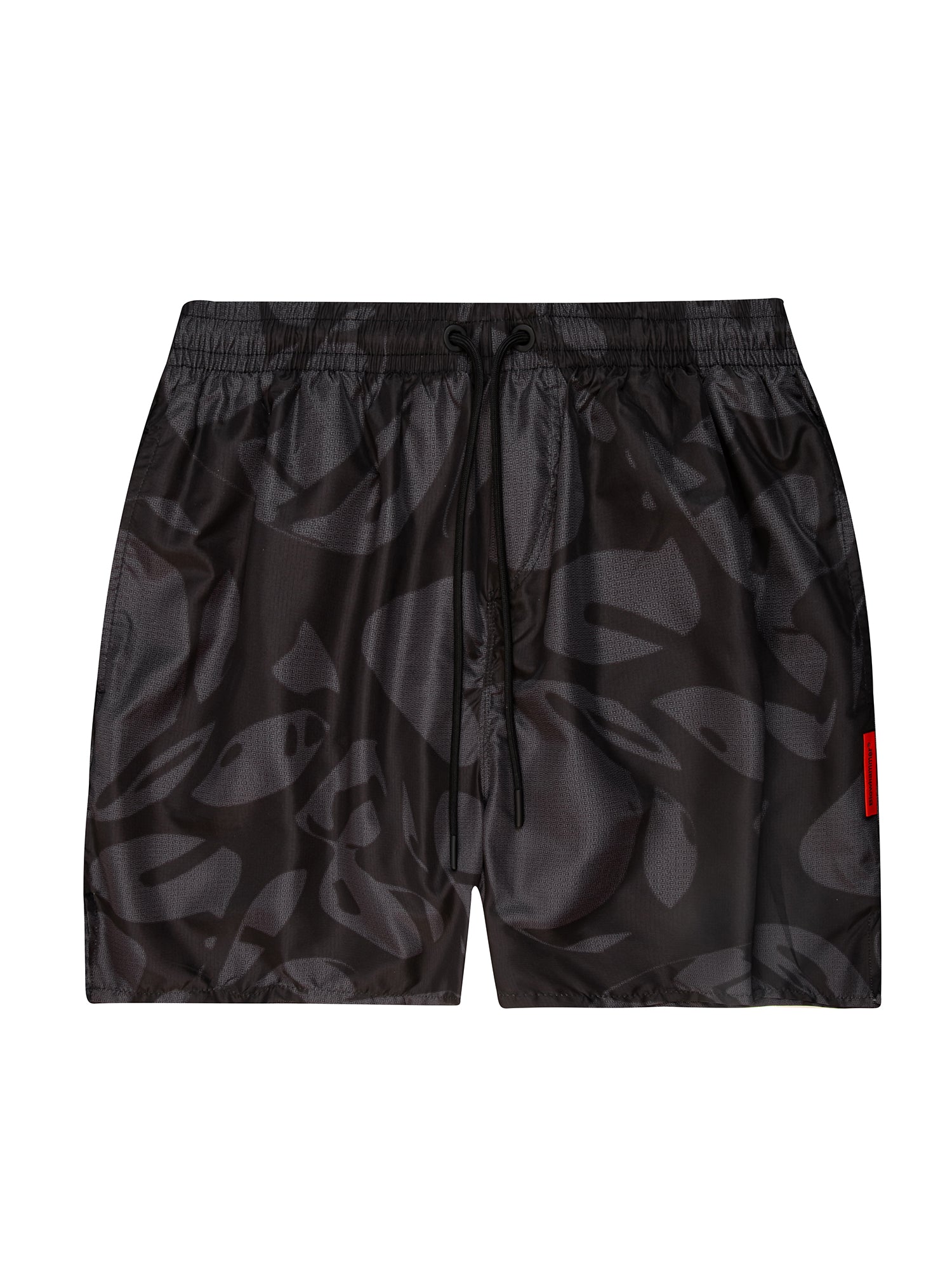 Vita elasticizzata con coulisse. Tasche laterali. Retina interna. Stampa a sublimazione ed Etichetta applicata.