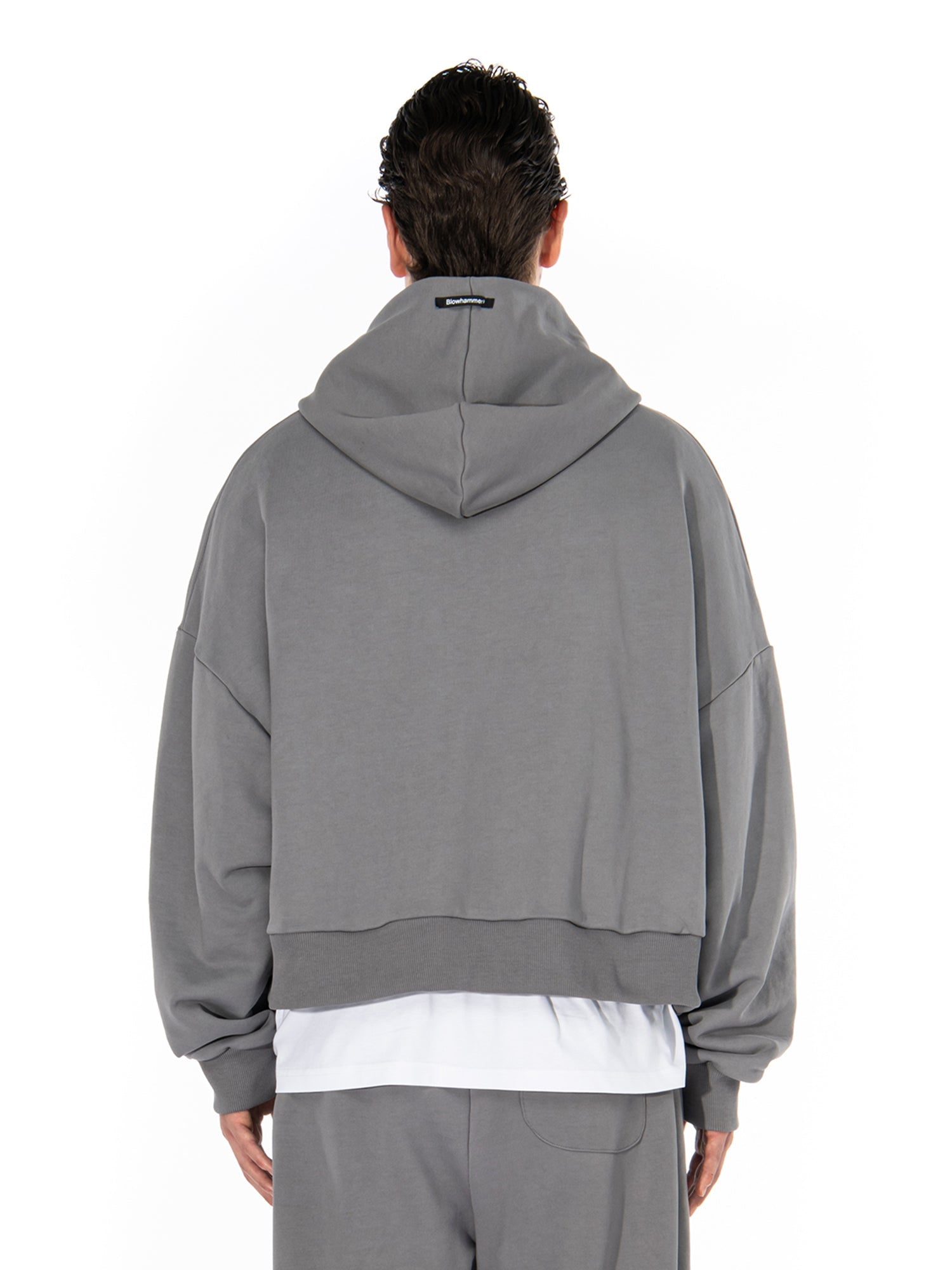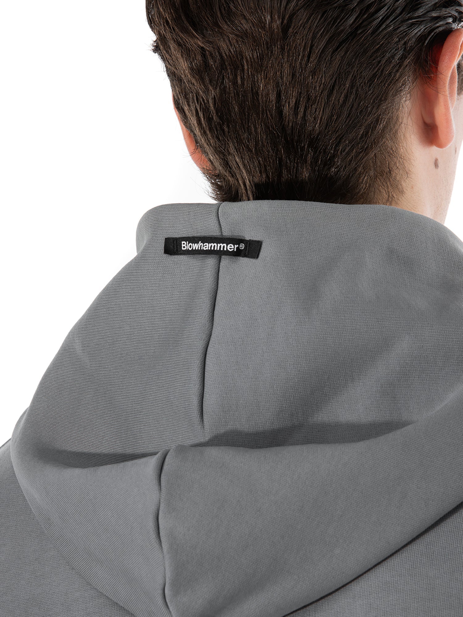Cappuccio, maniche lunghe, chiusura frontale con Zip, due tasche laterali. Stampa Digitale "Social Overdose". Etichetta applicata.