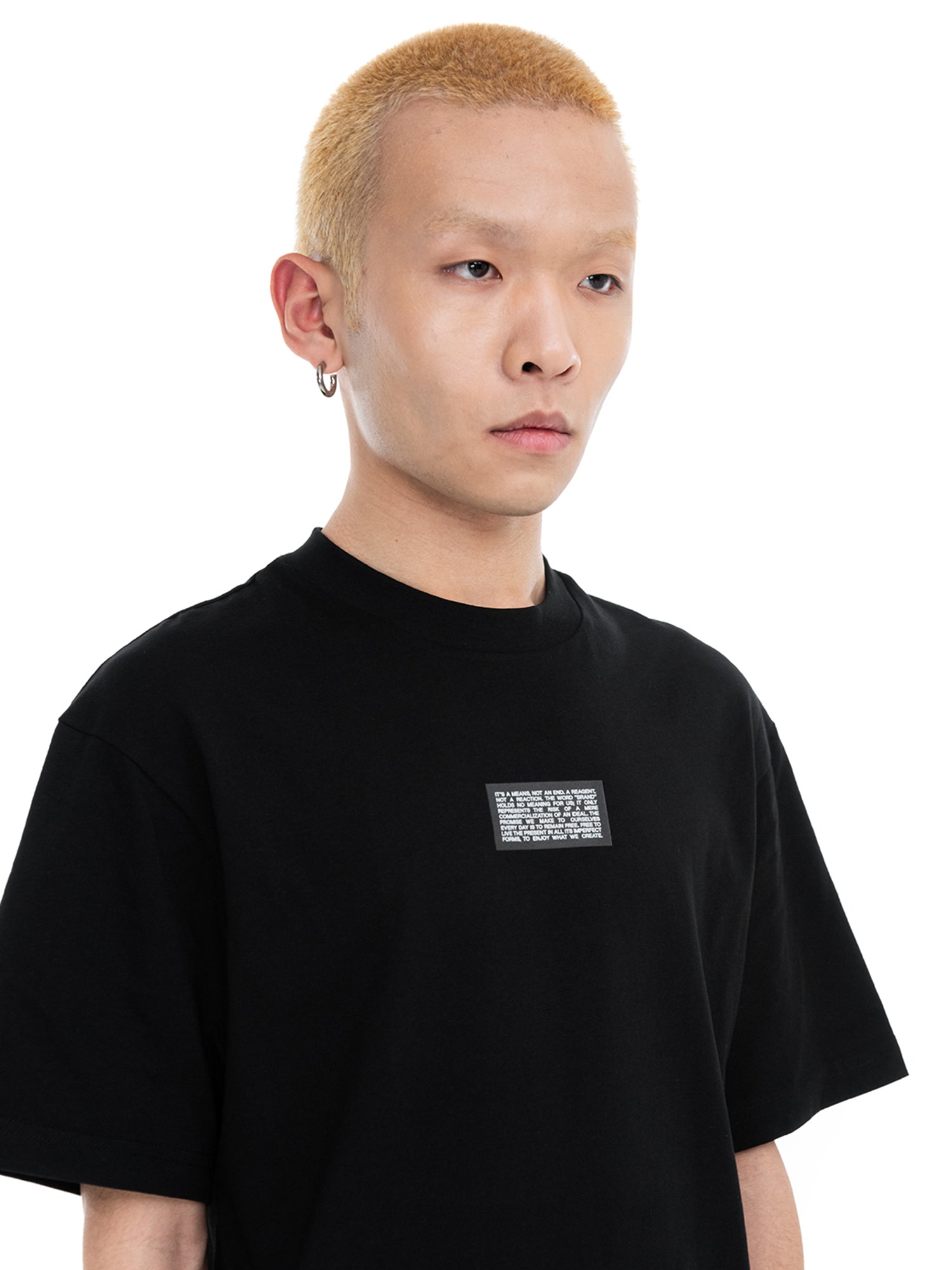 Girocollo. Maniche corte. Stampa digitale ed Etichetta applicata.