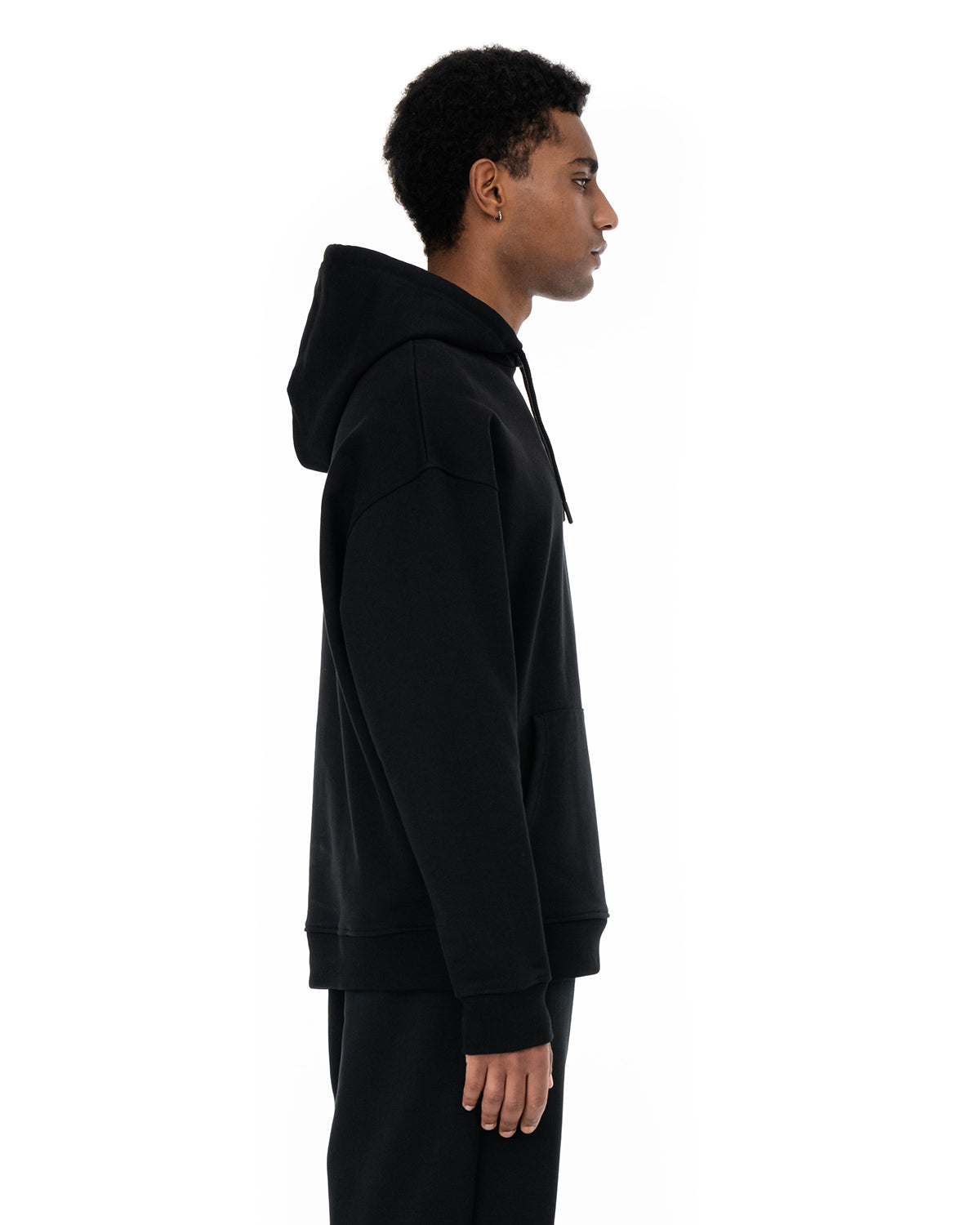 Cappuccio regolabile con laccio. Tasca canguro. Finiture a coste. Stampa digitale ed Etichetta applicata.