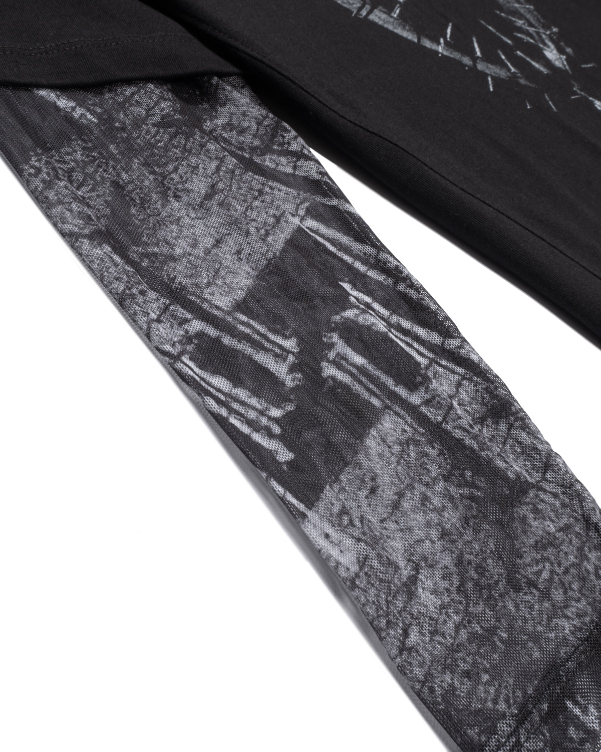 T-Shirt Boxy con maniche a rete in poliestere. Girocollo. Stampa digitale.
