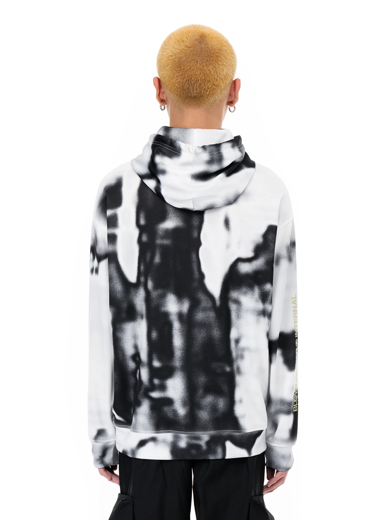 Cappuccio regolabile con laccio. Tasca canguro. Finiture a coste. Stampa a sublimazione, Stampa digitale ed Etichetta applicata.