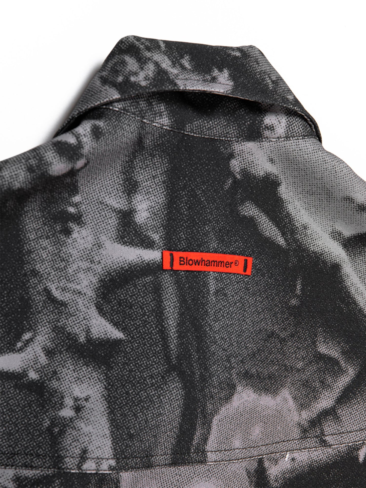 Colletto ampio. Chiusura con bottoni nascosti. Maniche lunghe. Stampa a sublimazione.