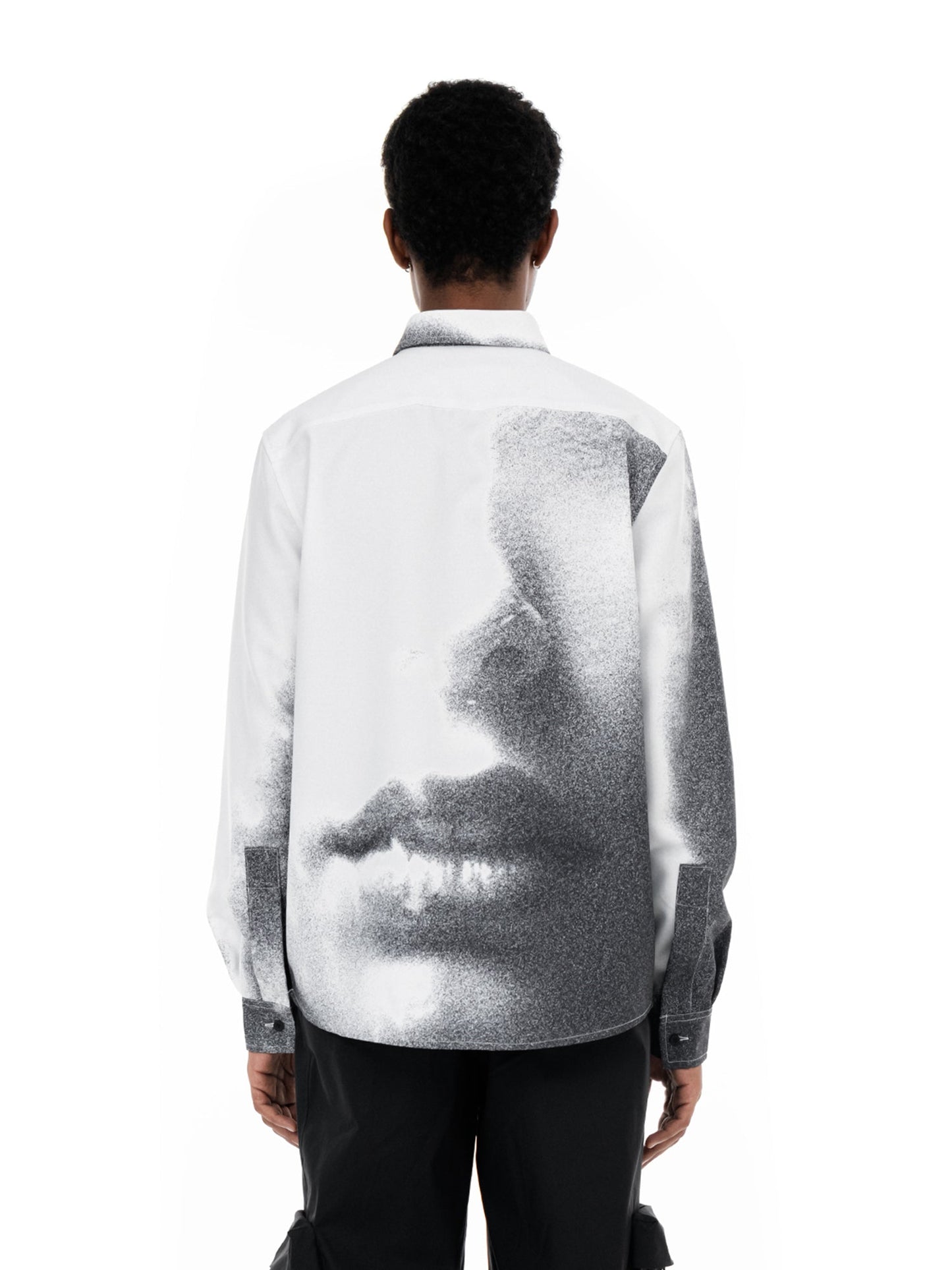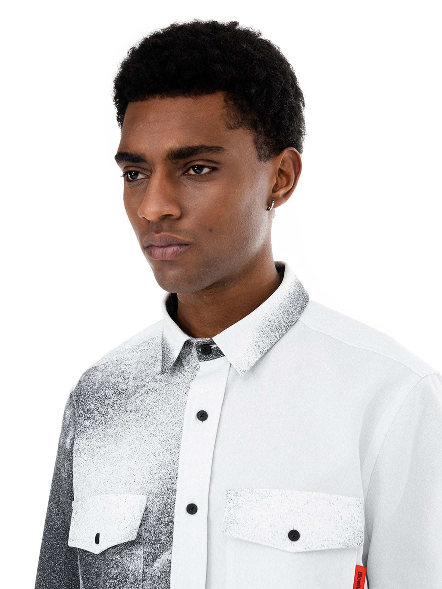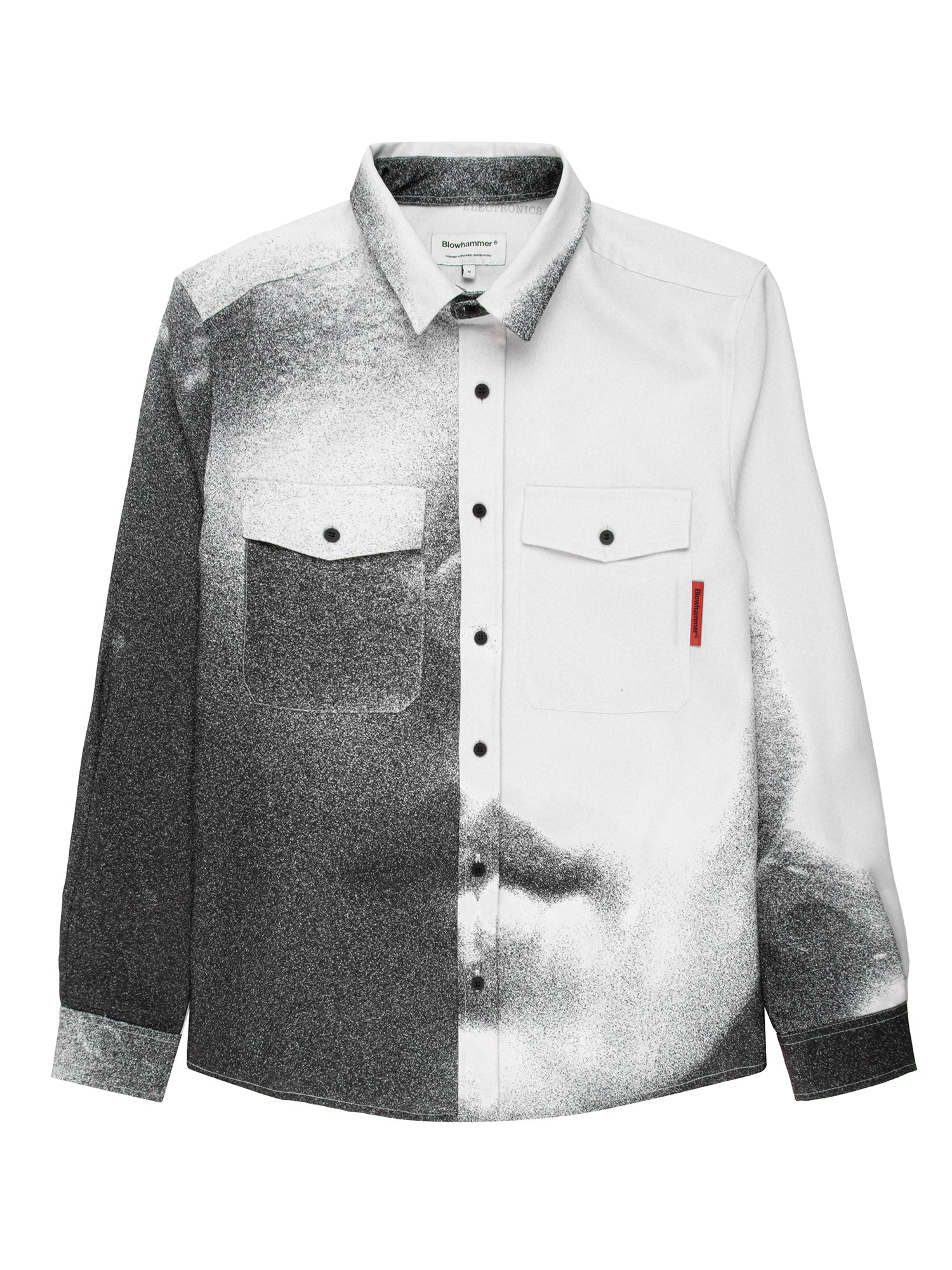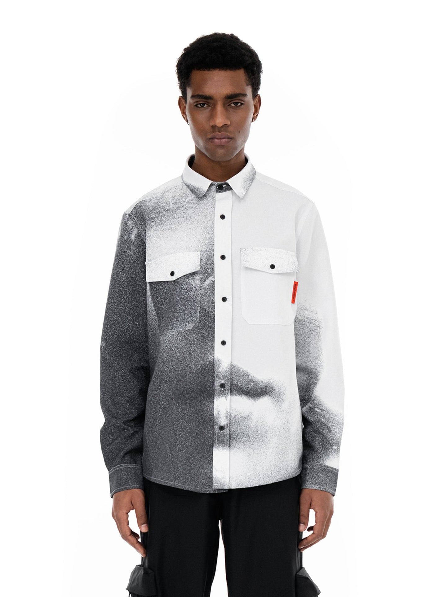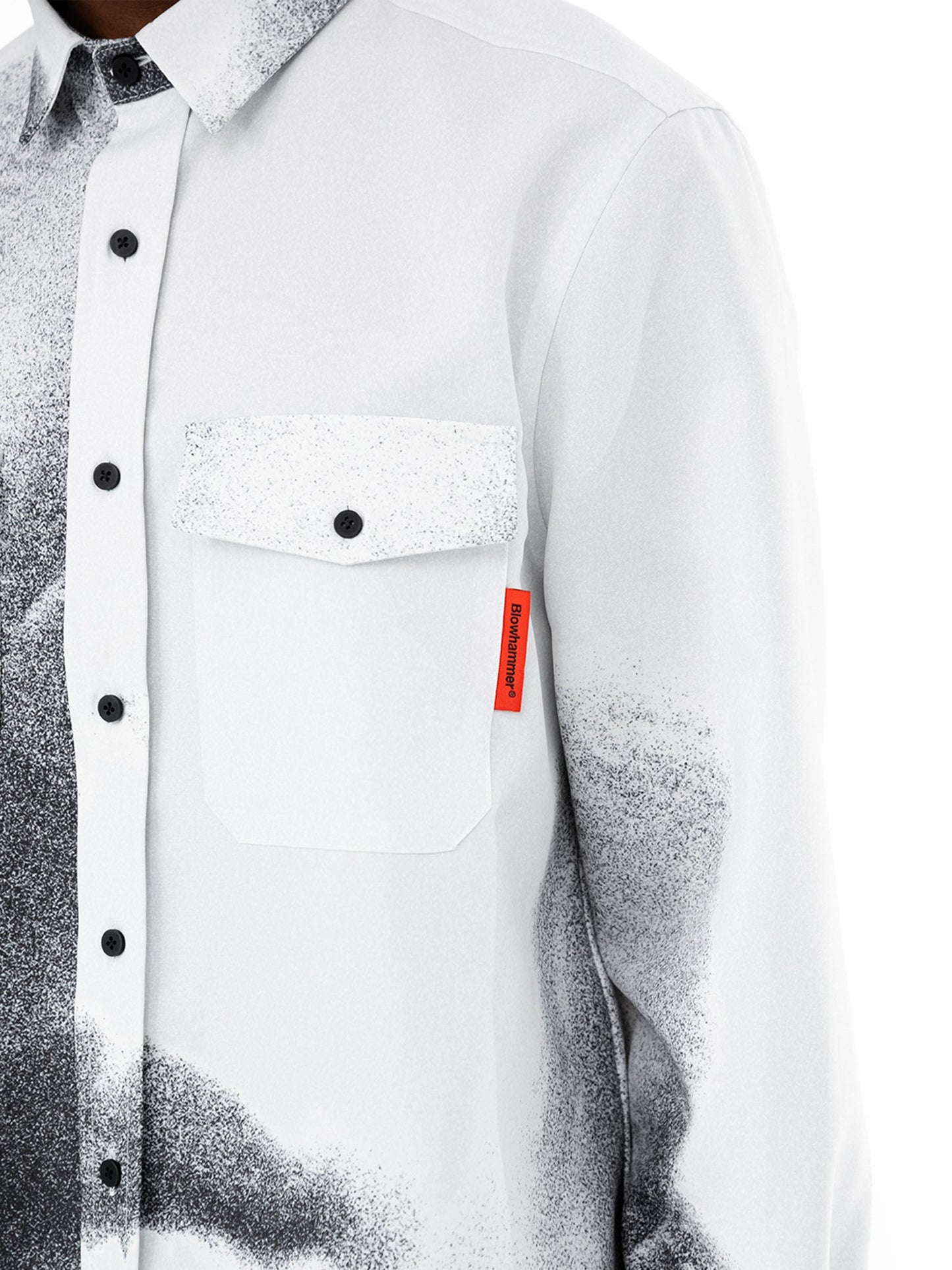 Colletto ampio. Chiusura con bottoni. Tasche sul petto. Maniche lunghe. Stampa a sublimazione ed Etichetta applicata.