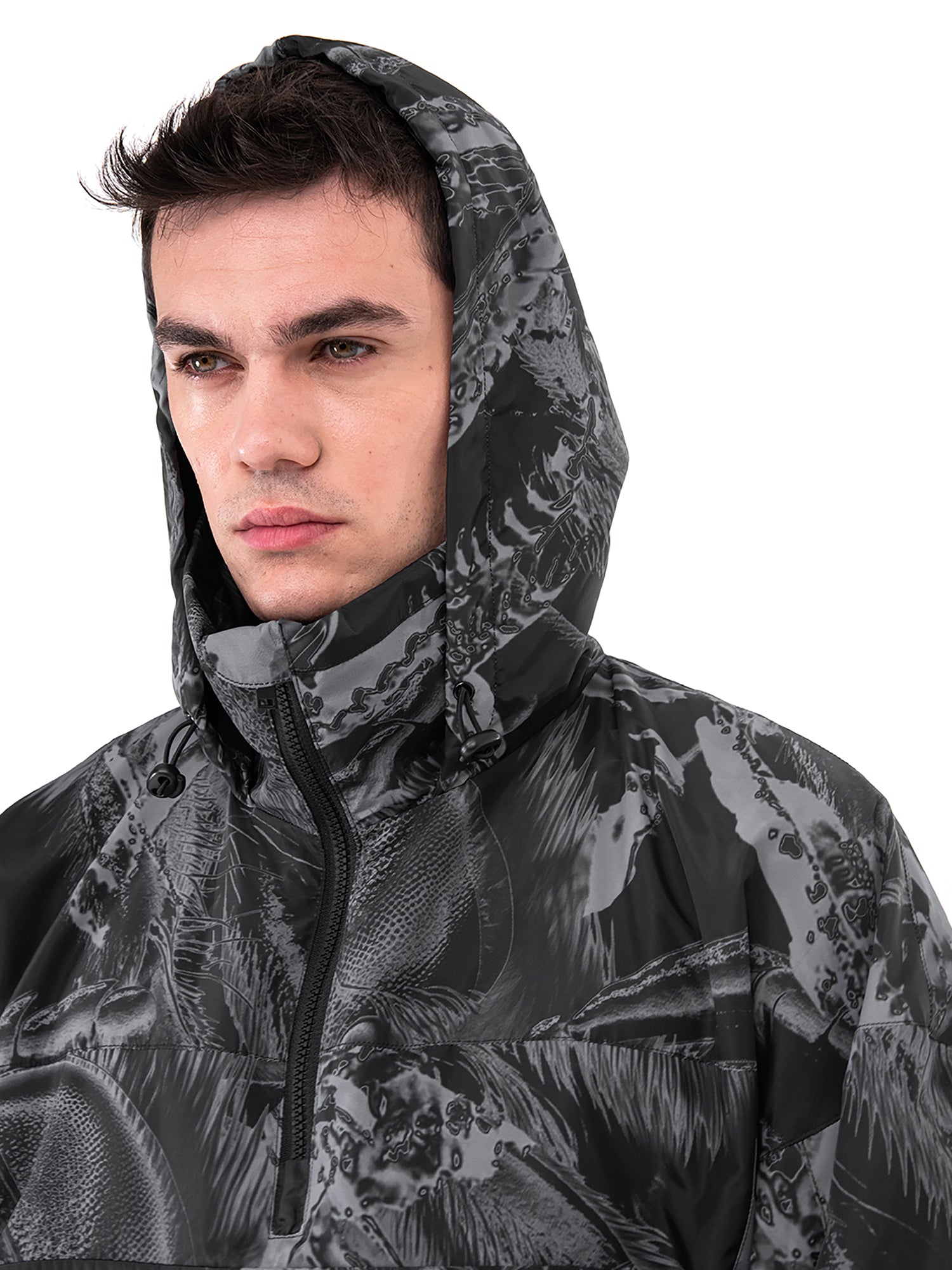 Cappuccio regolabile. Chiusura con cerniera lampo corta. Tasca a marsupio. Polsini e fondo elastico Etichetta applicata.