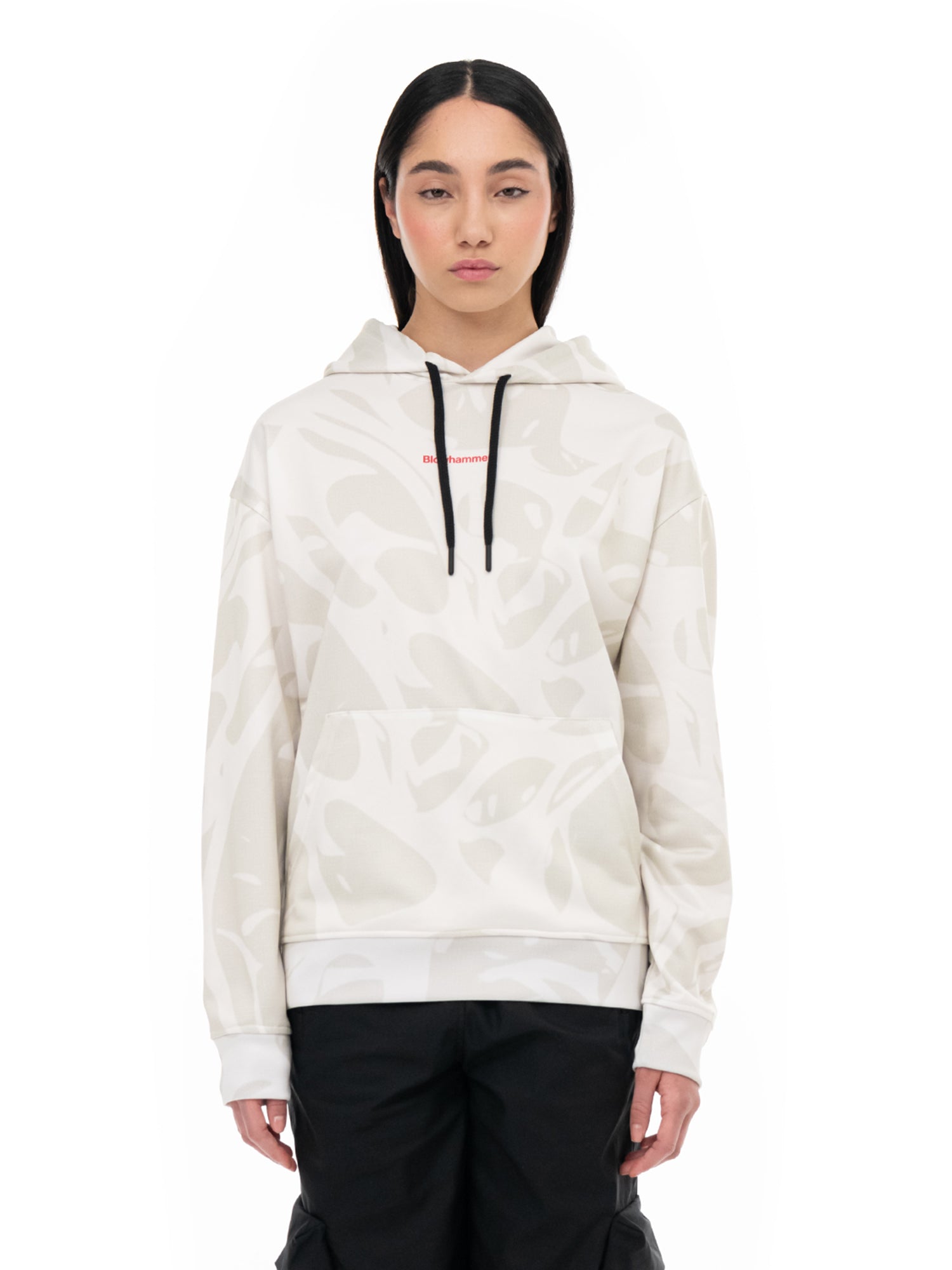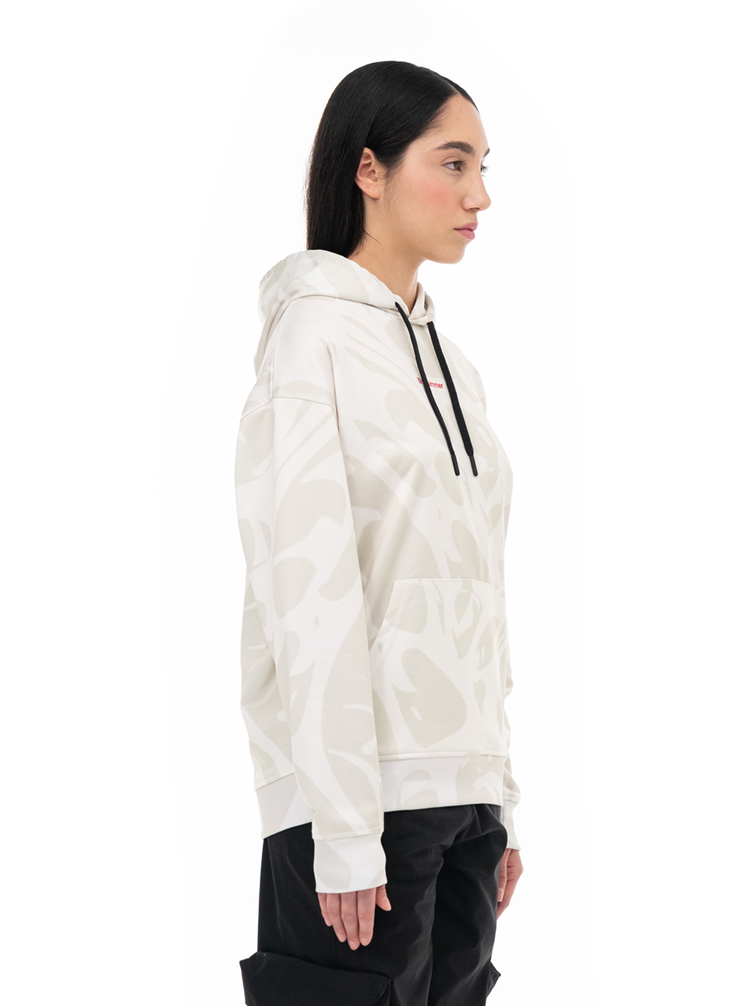 Cappuccio regolabile con laccio. Tasca canguro. Finiture a coste. Stampa a sublimazione e Stampa digitale.