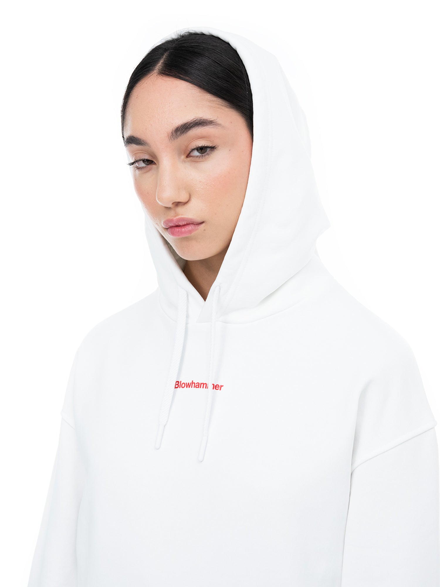 Cappuccio regolabile con laccio. Tasca canguro. Finiture a coste. Stampa digitale.
