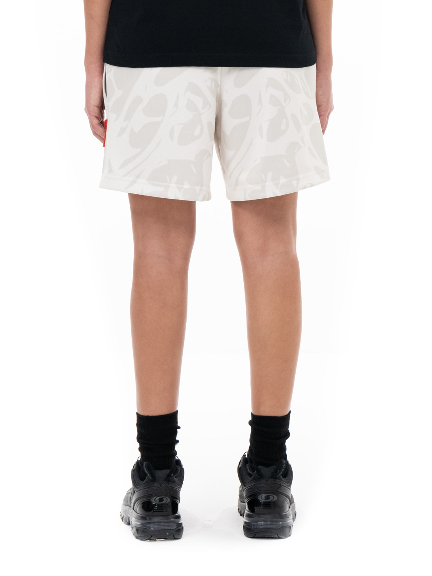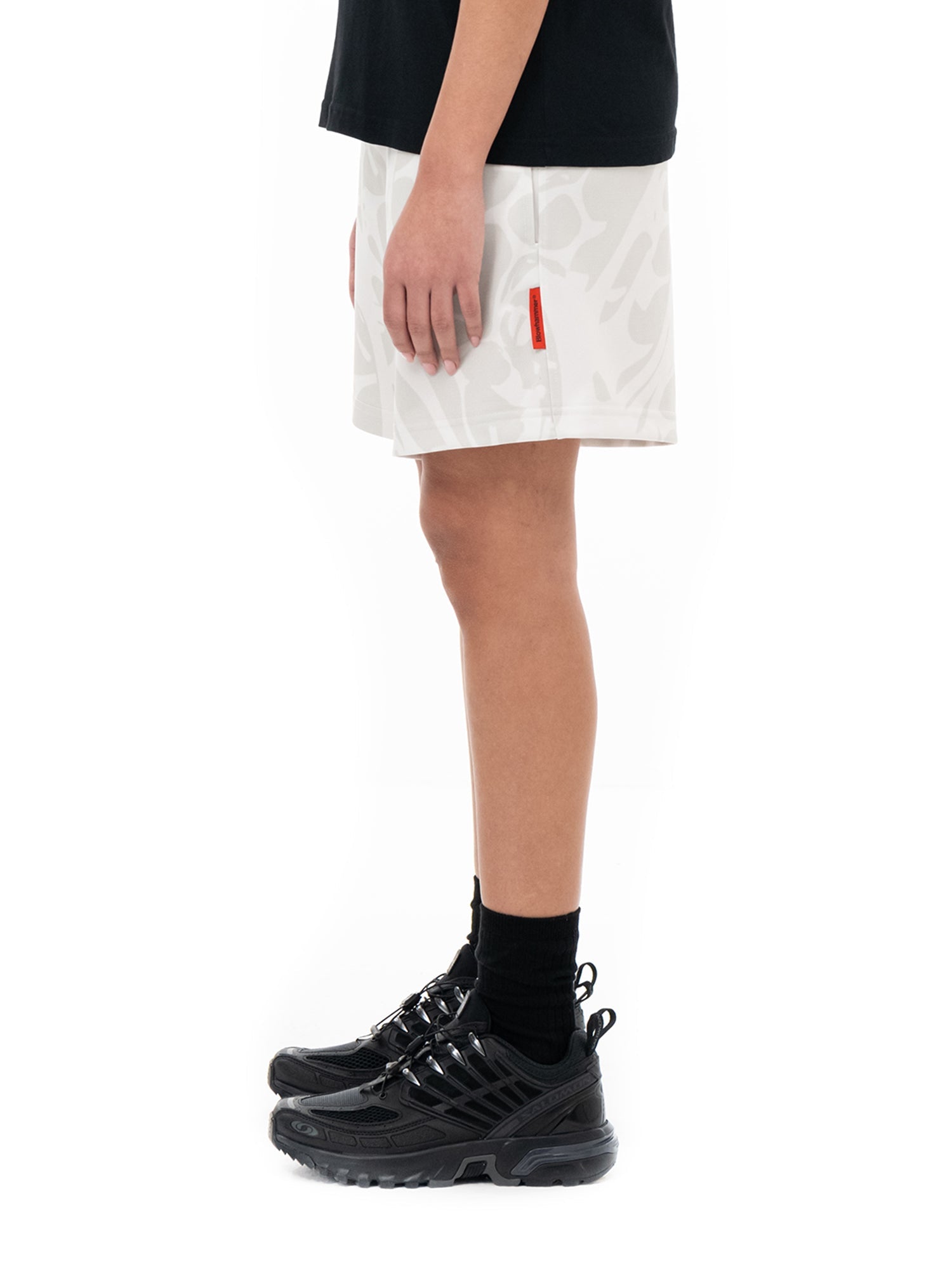 Vita elasticizzata con coulisse. Tasche laterali. Stampa a sublimazione. Etichetta applicata.
