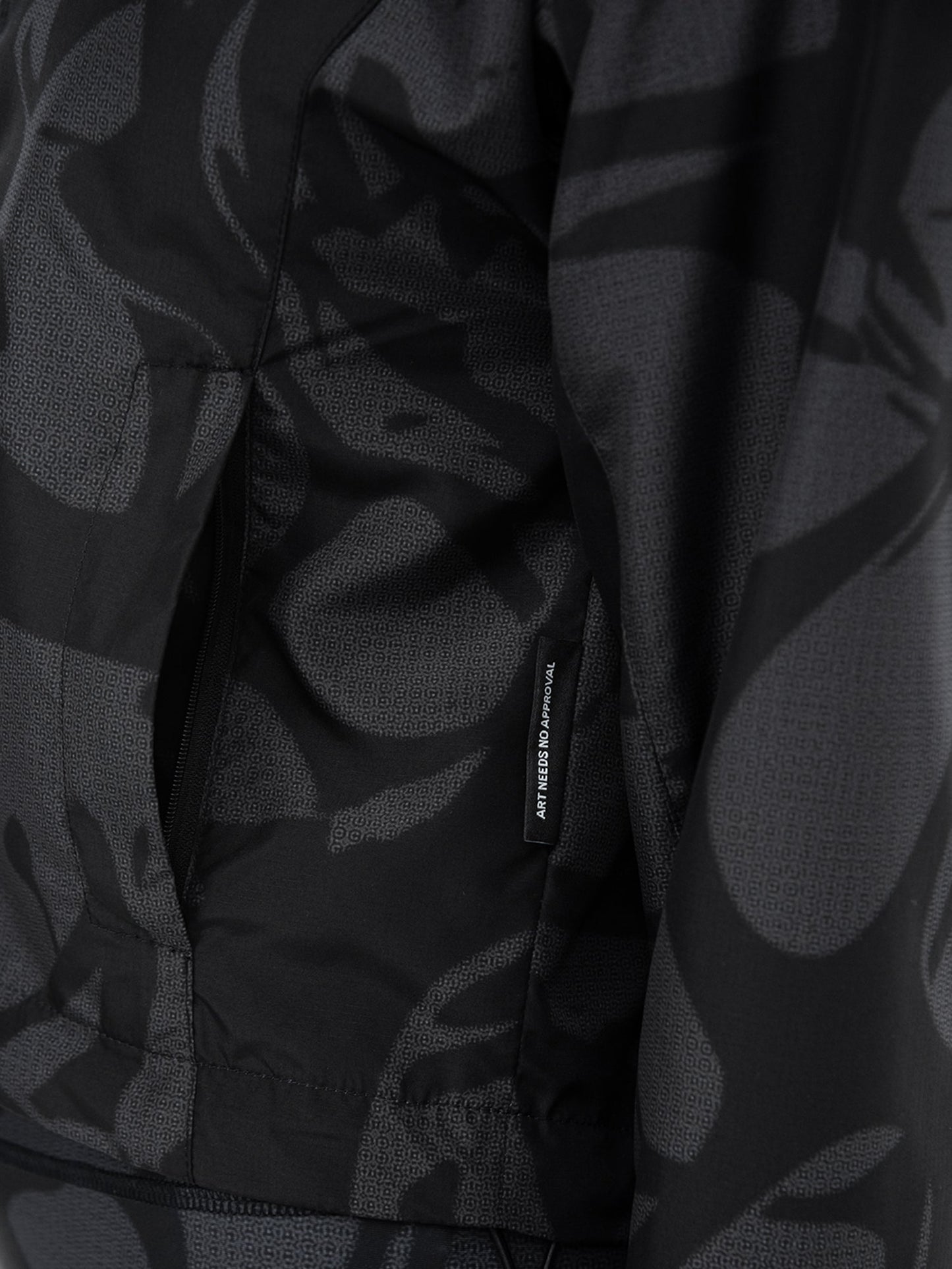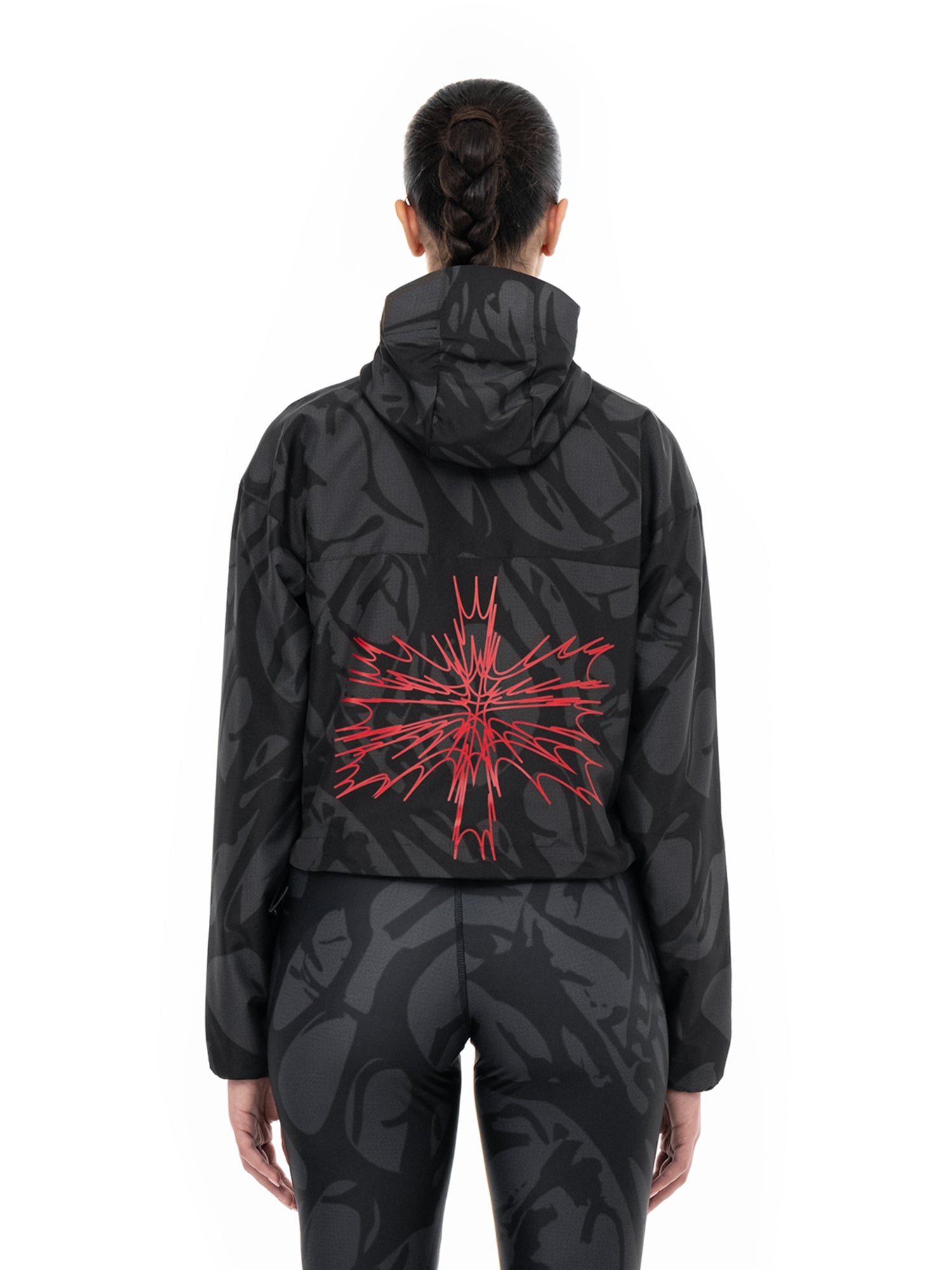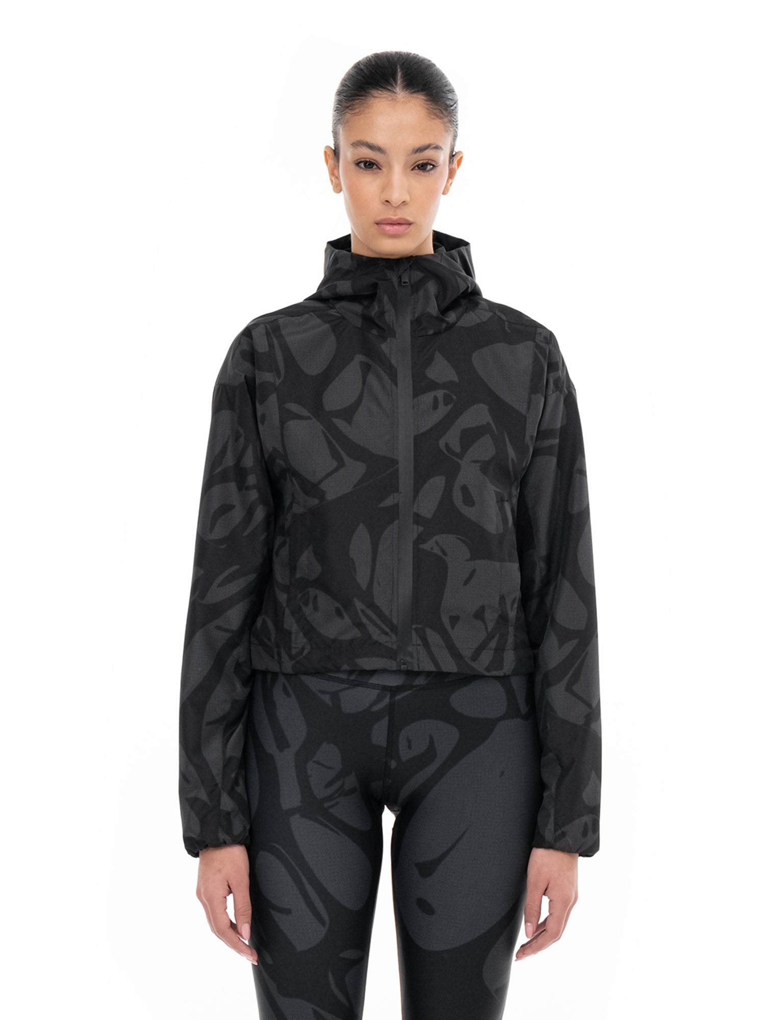 Cappuccio regolabile. Chiusura con cerniera lampo impermeabile.Tasche laterali. Stampa a sublimazione. Etichetta applicata.