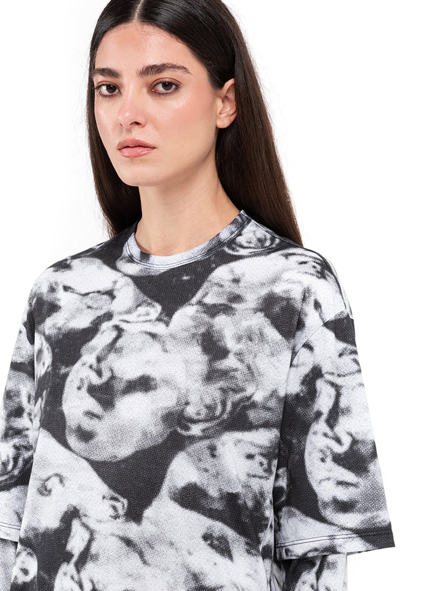 Girocollo. Maniche lunghe. Stampa a sublimazione e Stampa digitale. Vita regolabile con coulisse.