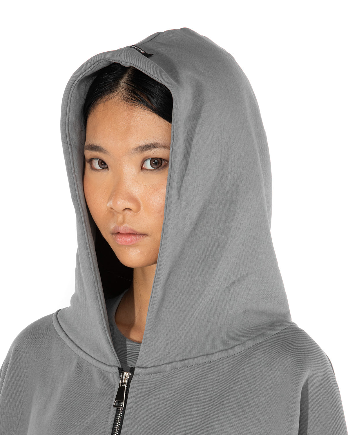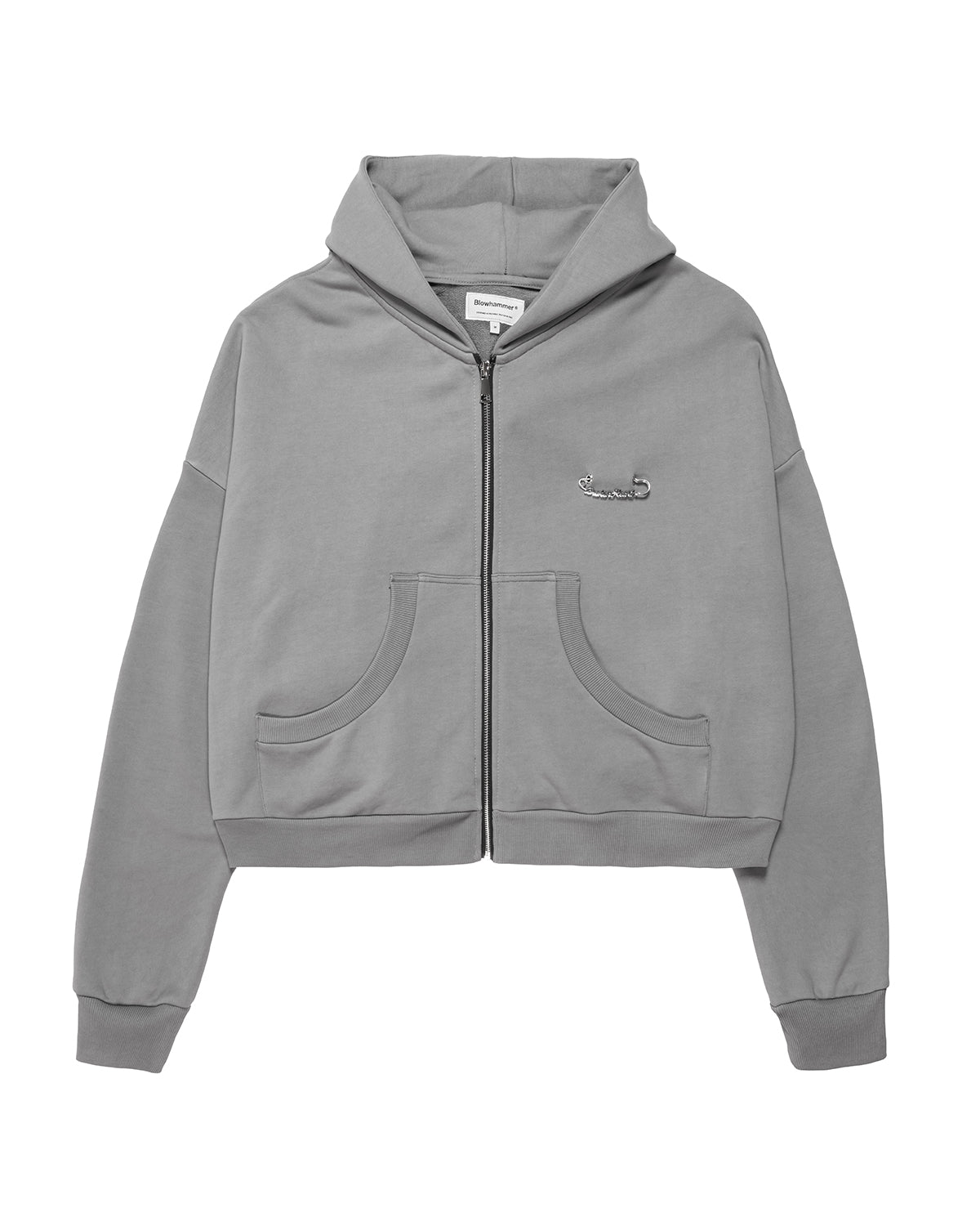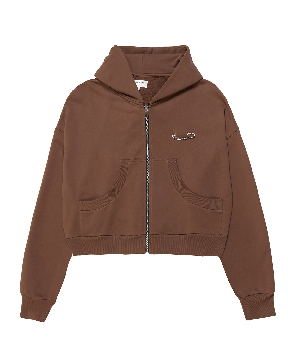 Cappuccio, maniche lunghe, chiusura frontale con Zip, due tasche laterali. Spilla "BROKENHEART ". Etichetta applicata.