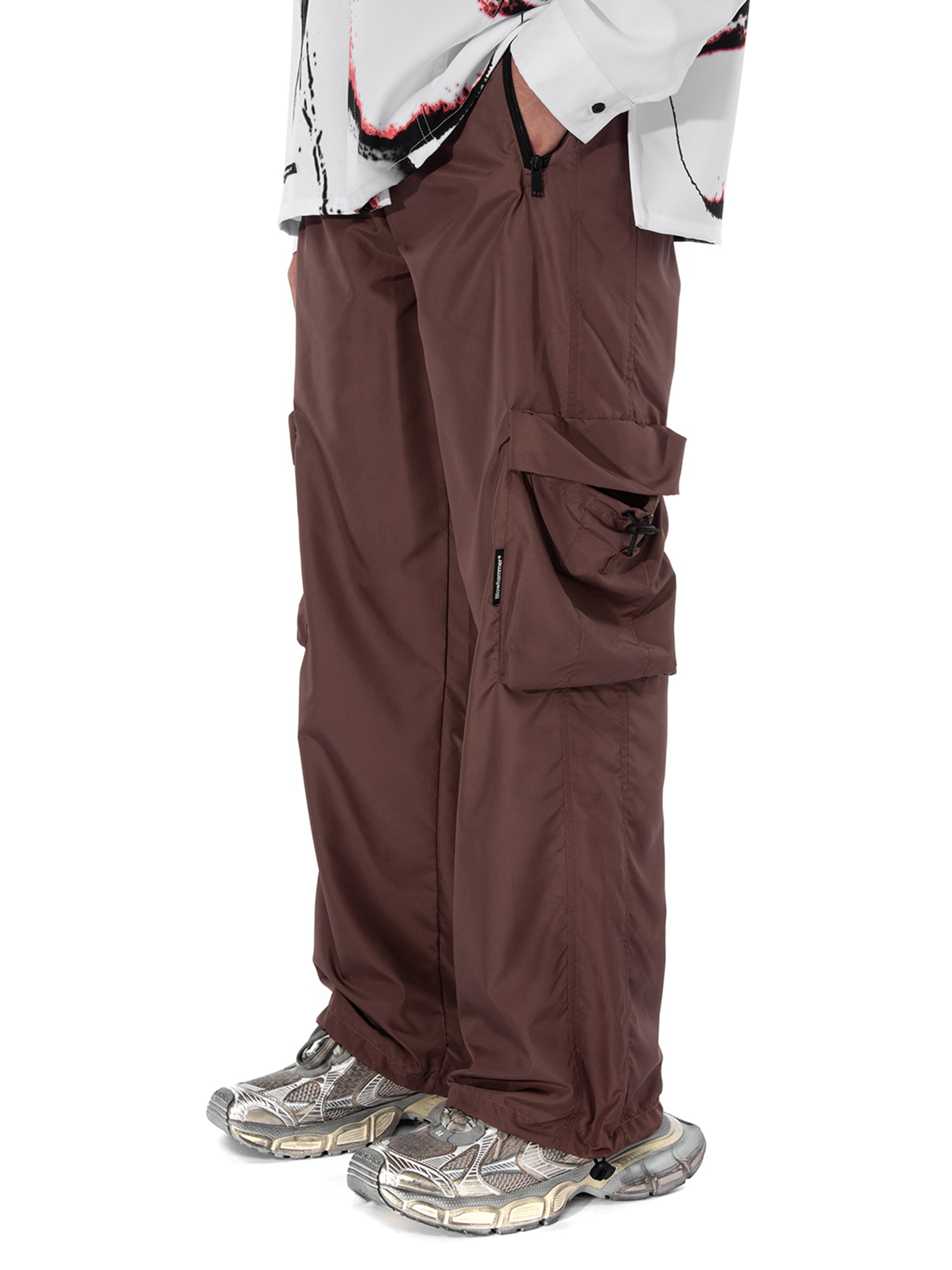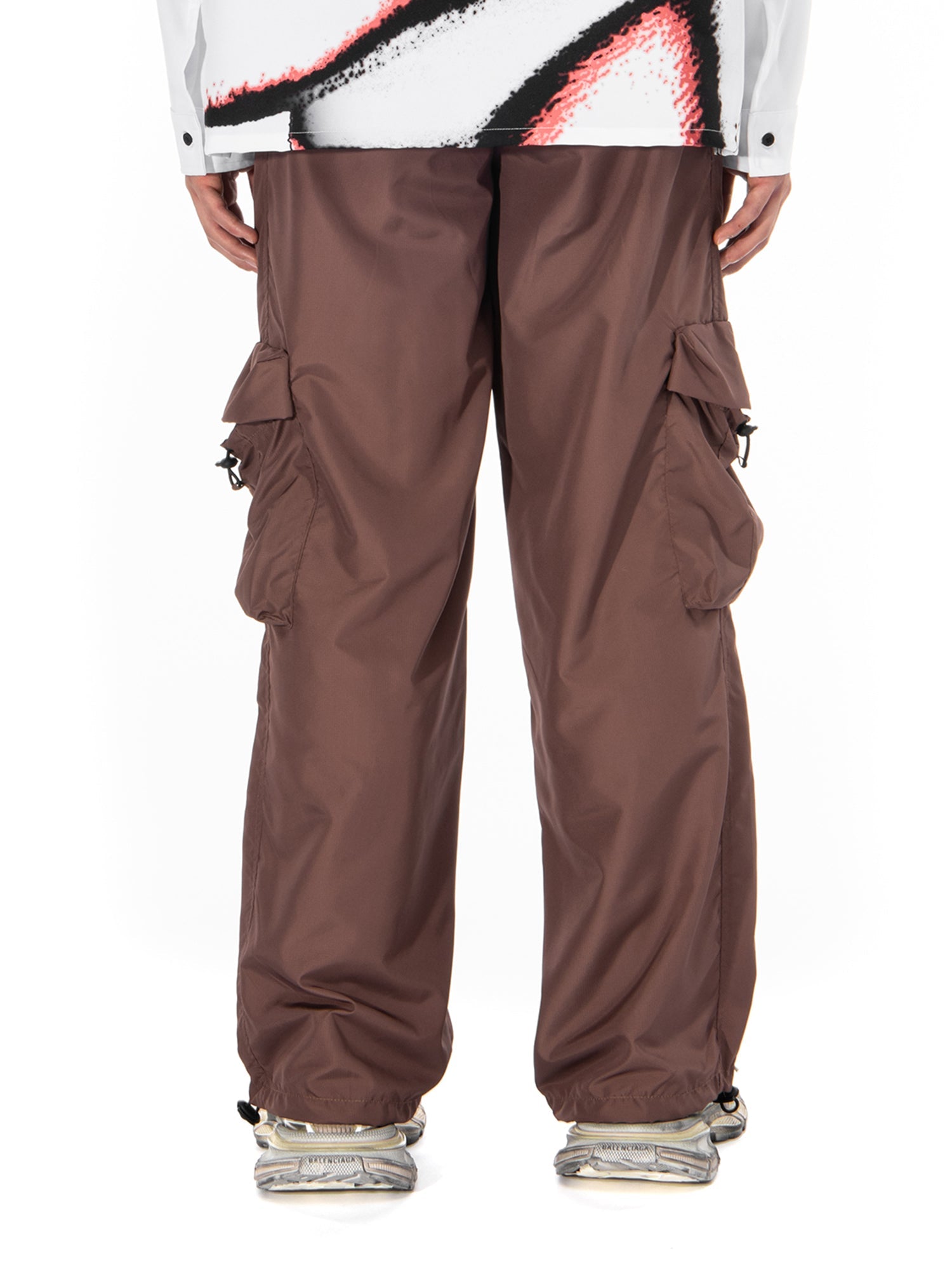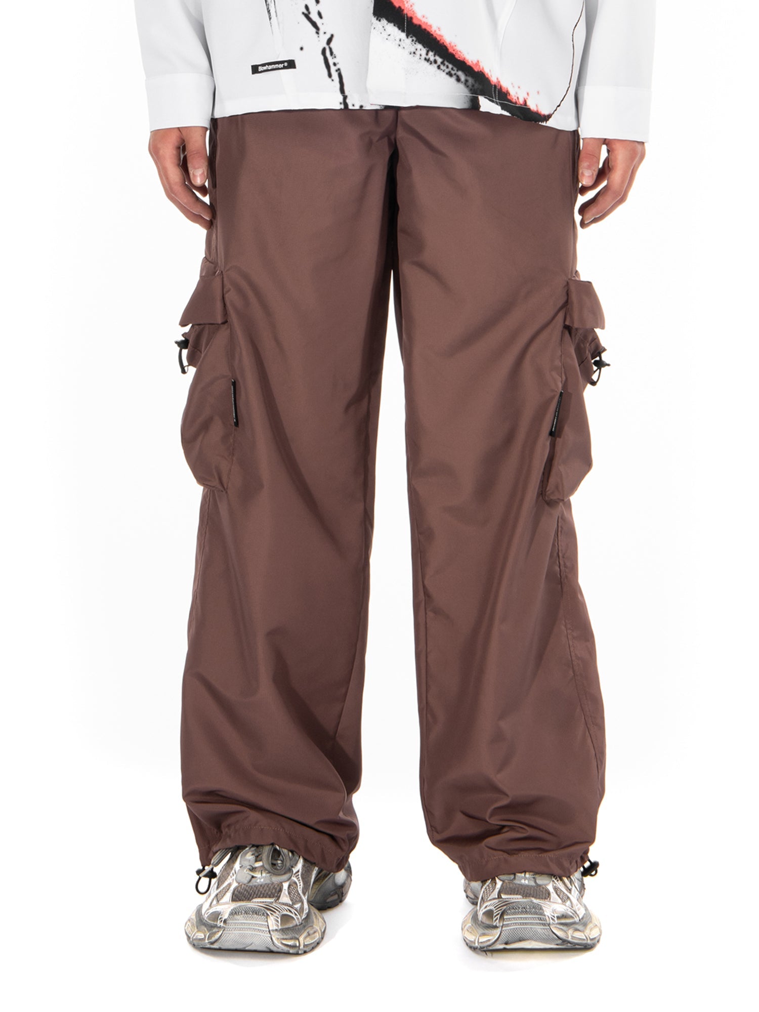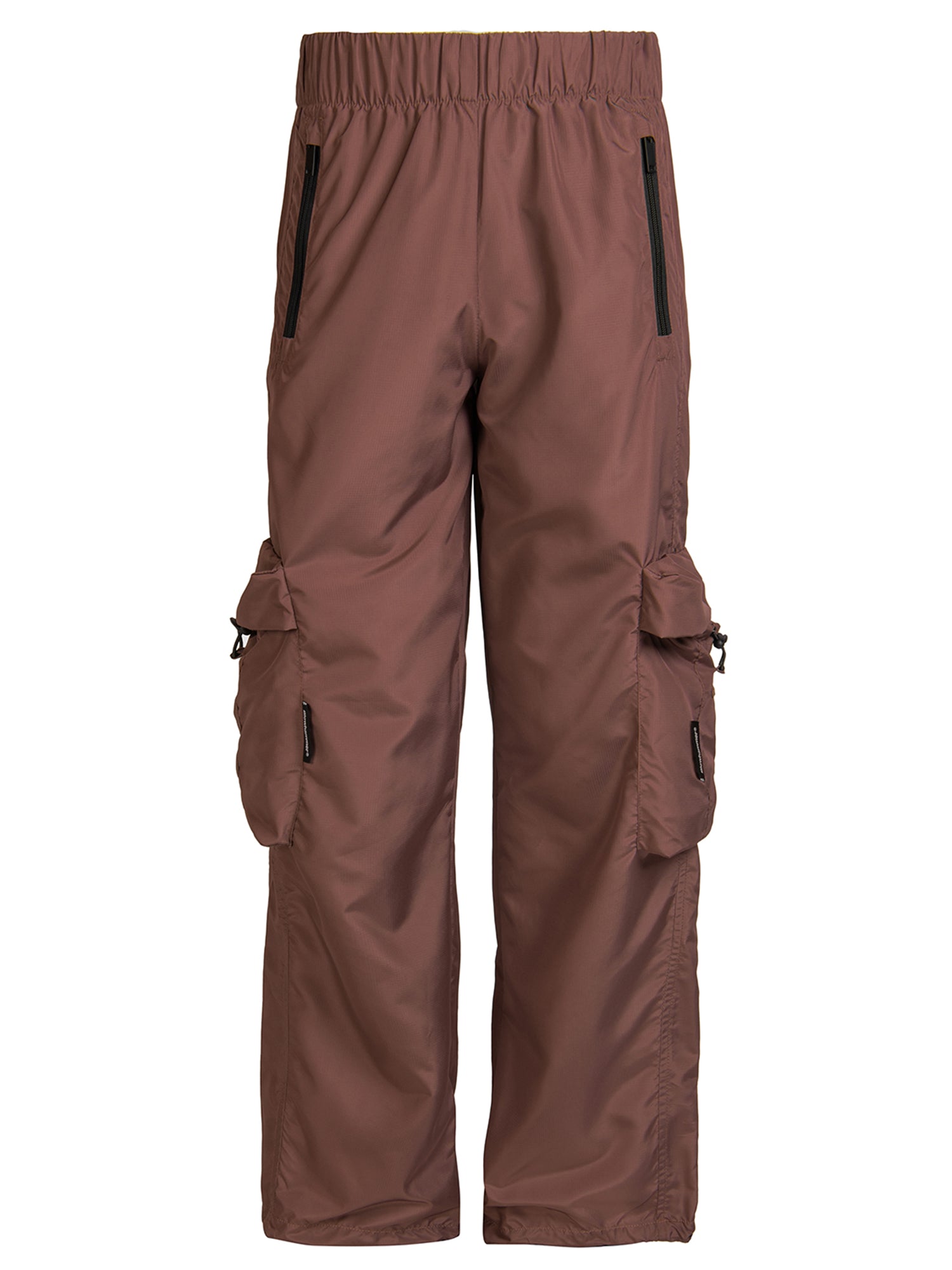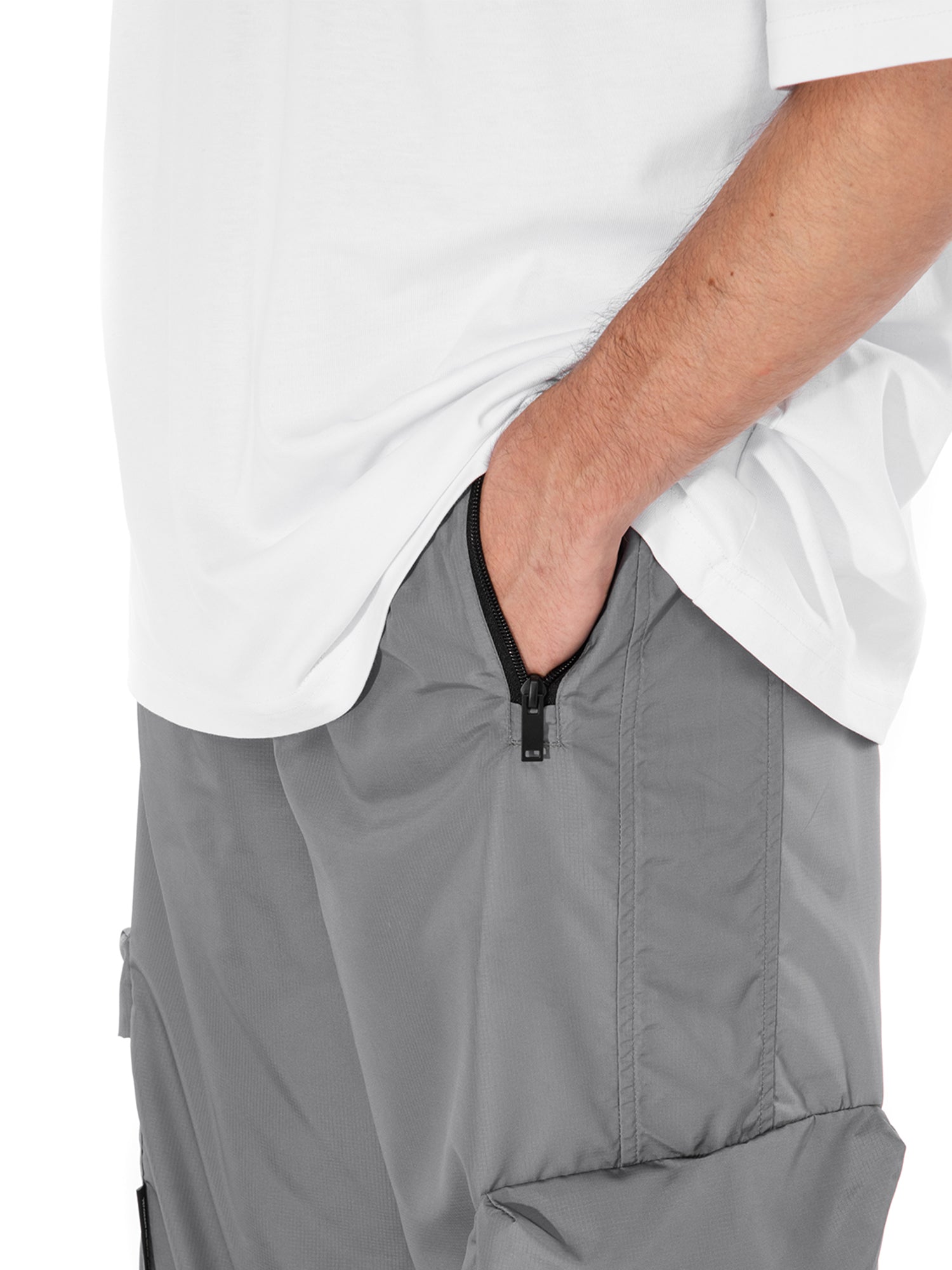 Vita elasticizzata regolabile. Tasche laterali con zip. Tasconi sulle gambe con stopper. Orlo regolabile alla caviglia. Stampa a sublimazione ed Etichetta applicata.