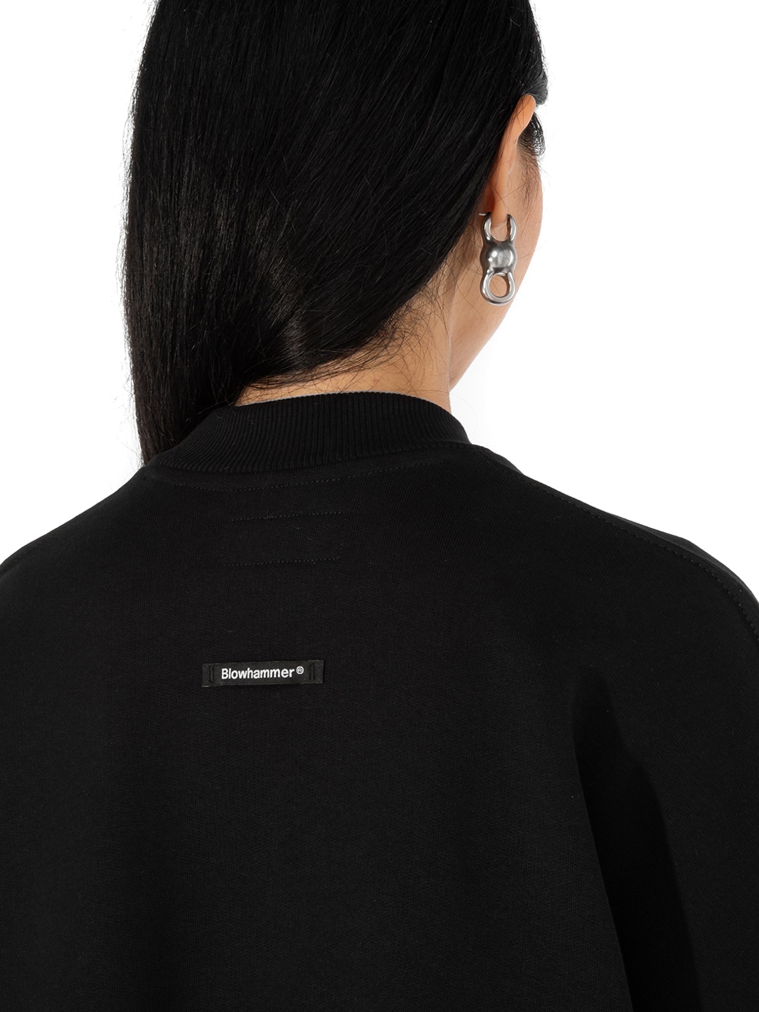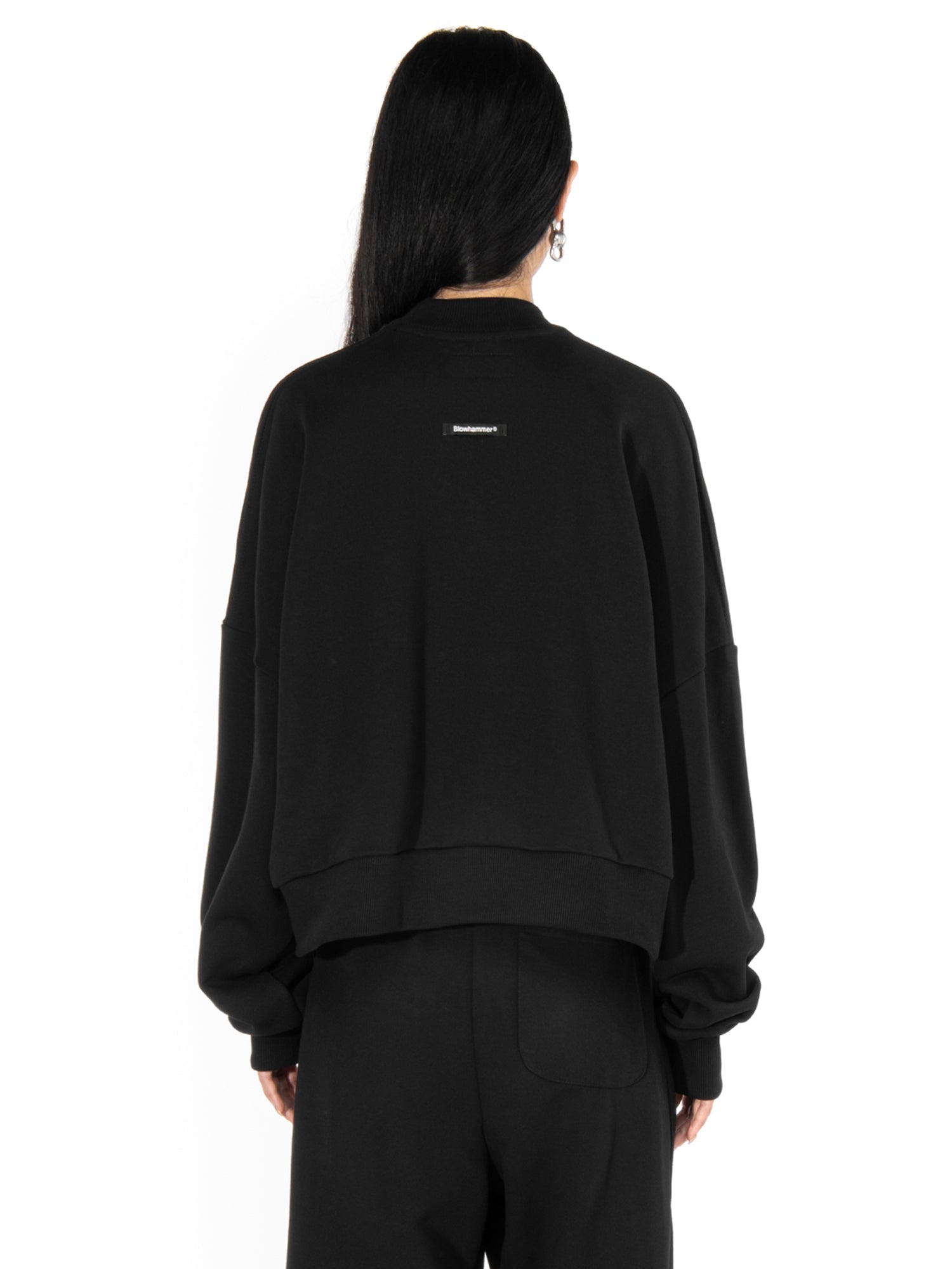 Girocollo. Finiture a coste. Ricamo frontale. Etichetta applicata