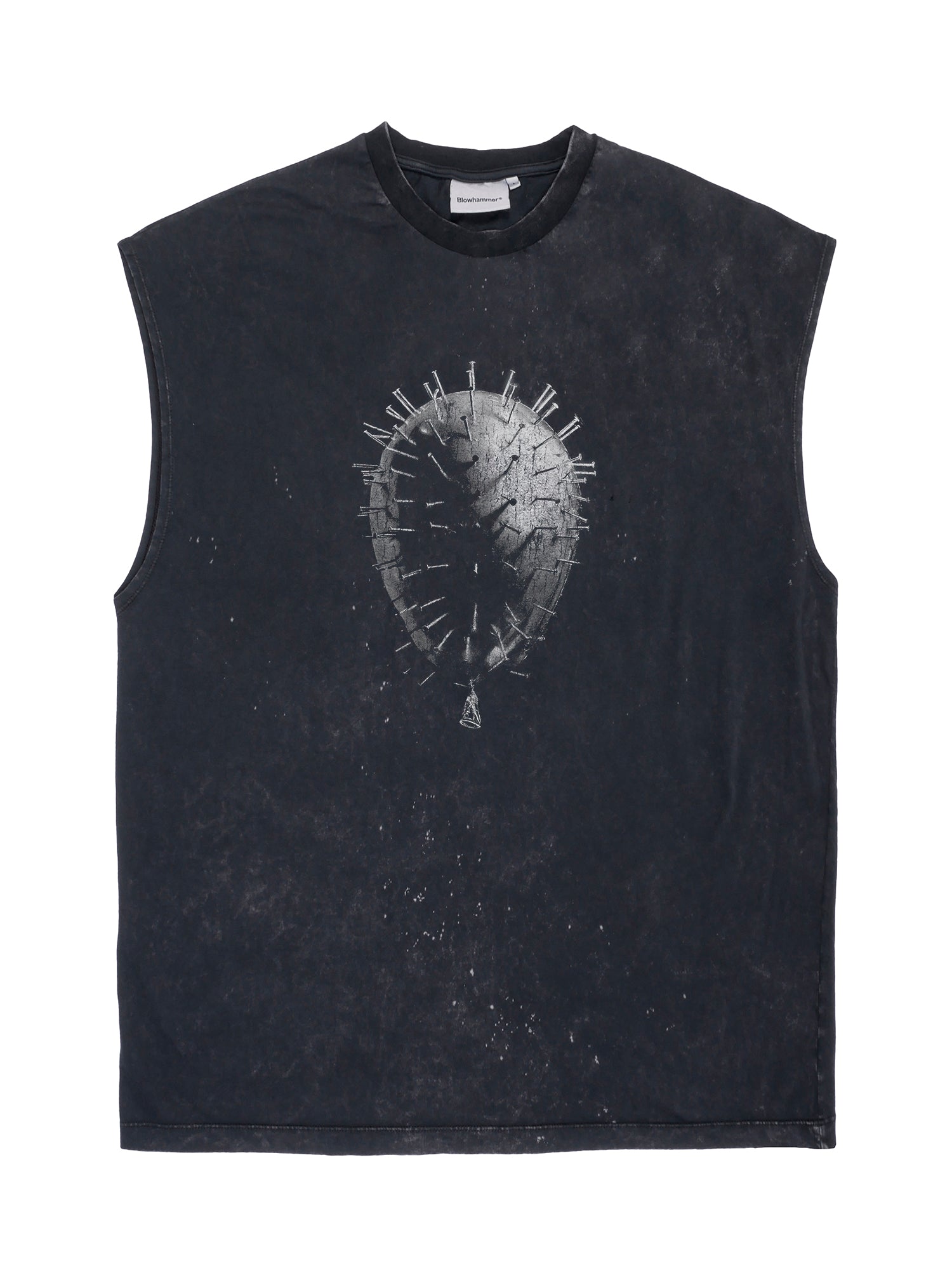 Canotta con lavaggio marmorizzato. Girocollo. Senza Maniche. Stampa digitale.