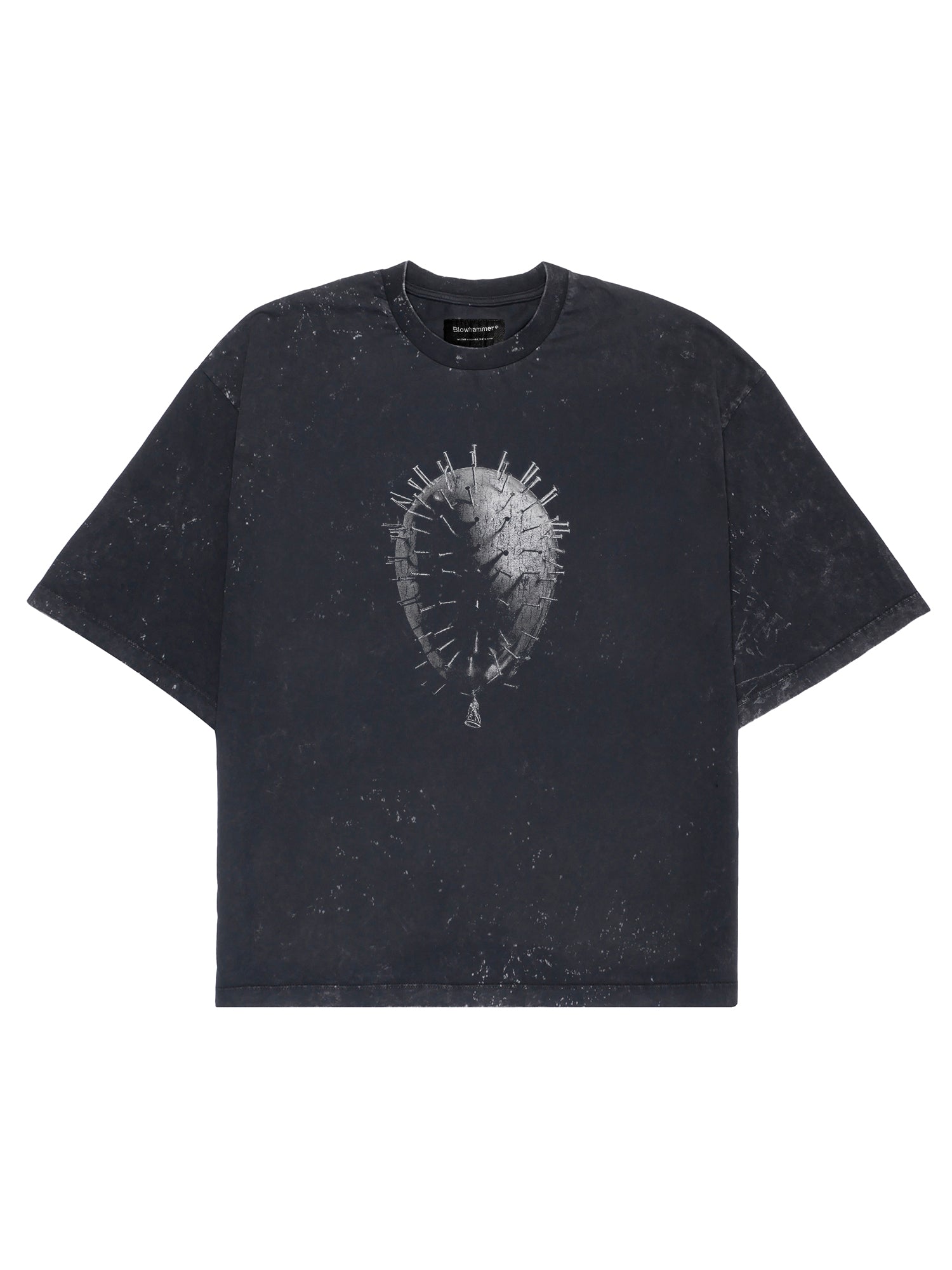 T-Shirt Boxy con Lavaggio marmorizzato. Girocollo. Maniche corte. Stampa digitale.